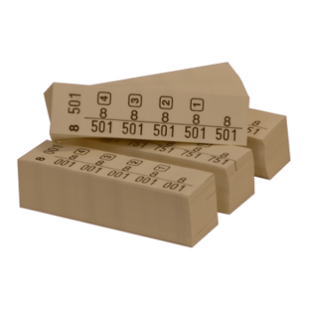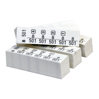 Etiquetas numeradas “high performance” más grandes con respeto a las estándar, para marcar cualquier tipo de prendas desde el numero 1 hasta el numero 1000, resistentes al agua y a los disolventes empleados en la limpieza en seco.